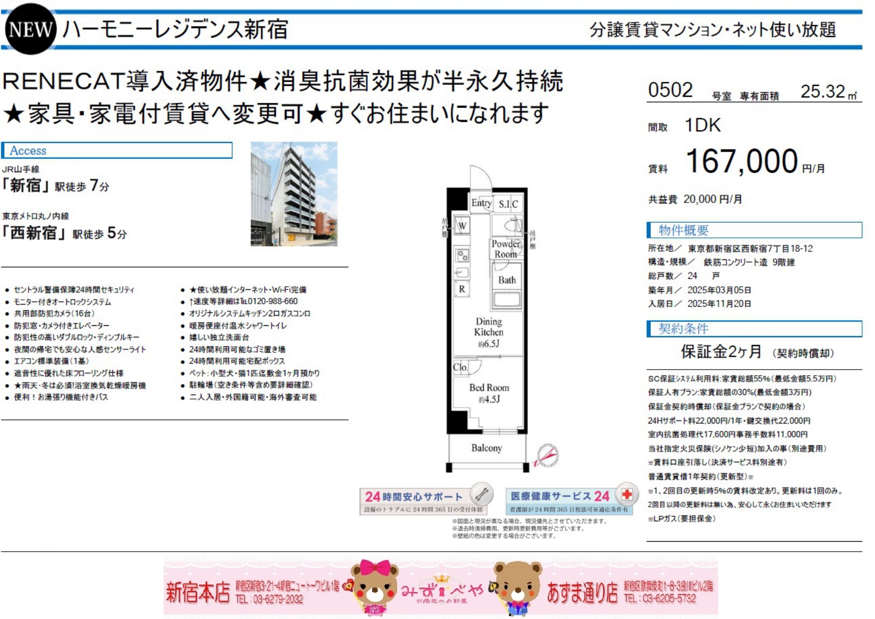 また歌舞伎町でお勤めのキャバ嬢さん、風俗嬢さんには夜職の方ご相談可能な物件の多い、