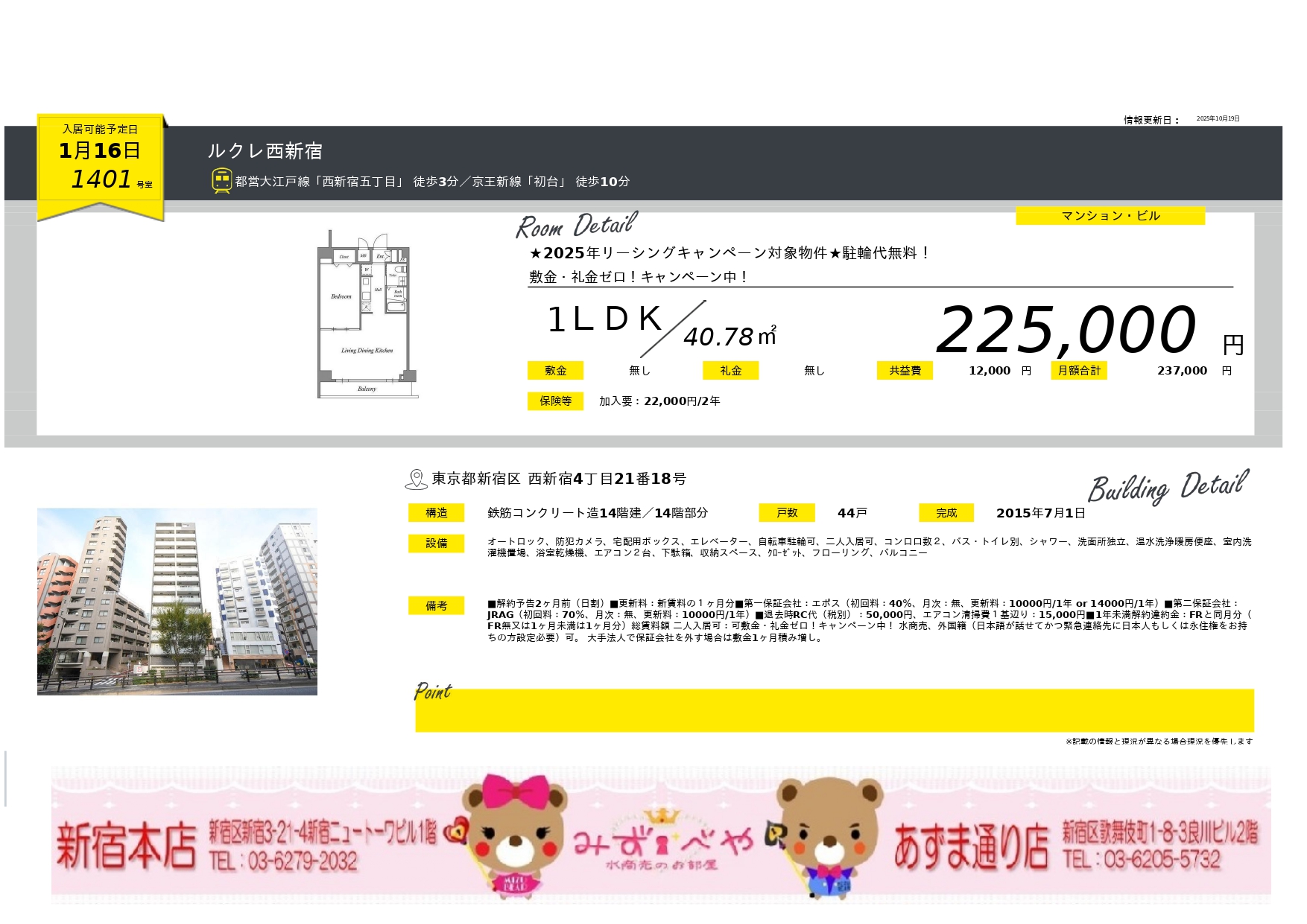 当社は新宿に2店舗構えておりますのでお部屋探しの際はお仕事前に寄って頂きやすい環境です。