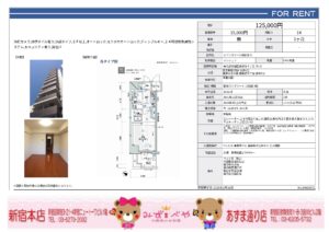 敷金:0ヶ月 礼金:1ヶ月