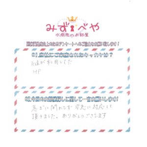 急ぎに関わらず早急に対応して頂きました。ありがとうございます。
